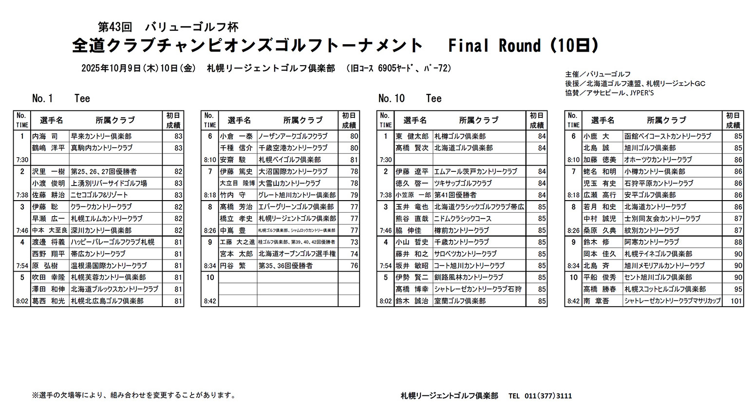 第43回大会 2日目の組合せ表を掲載いたしました!
